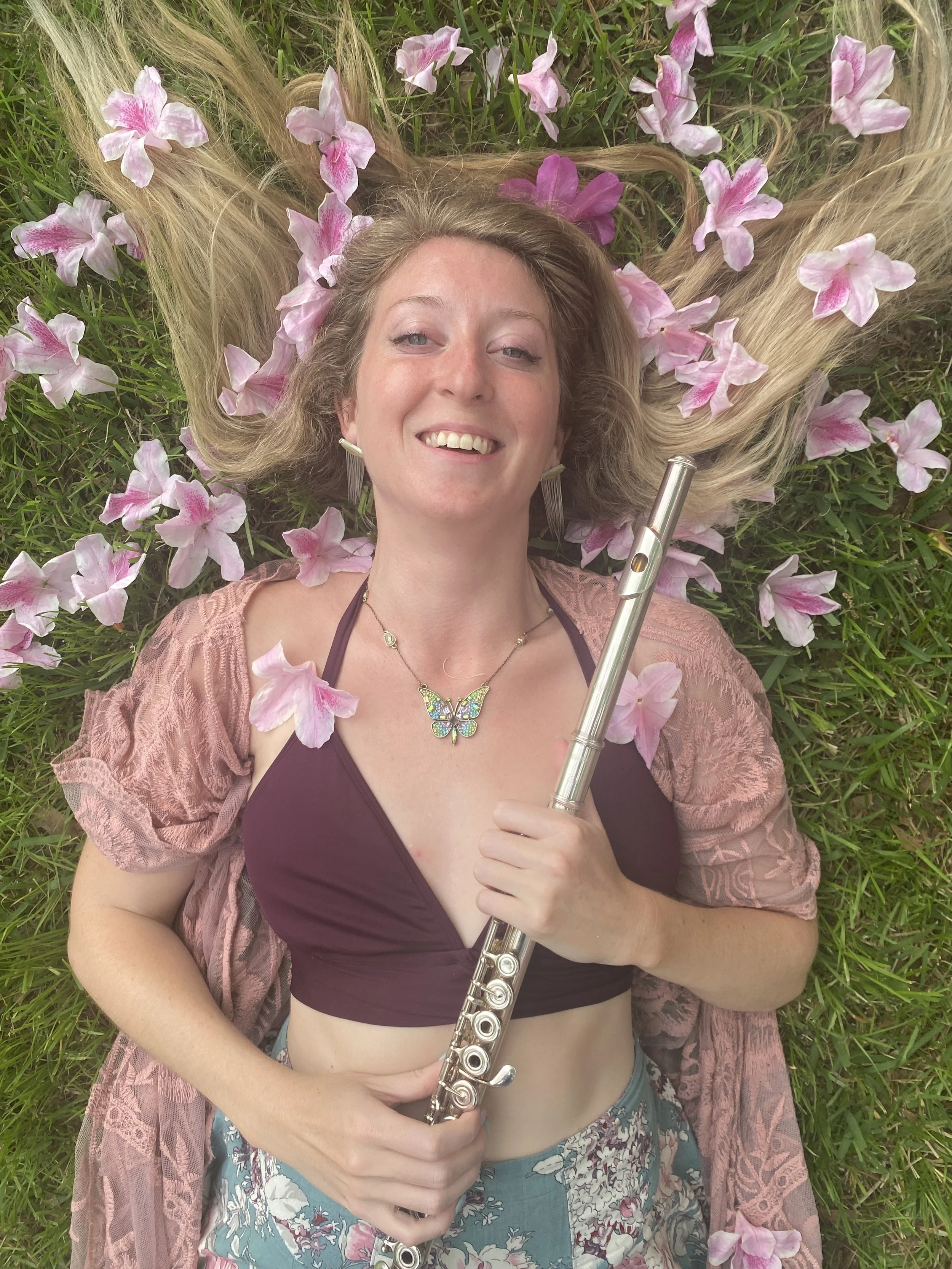 I’m Liria Rose — a classically trained flutist with over 20 years of experience, turned sound healer, teacher, and intuitive musician.